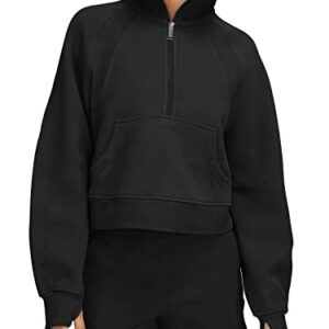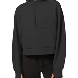 LASLULU Womens Hoodies Fleece Lined Collar Pullover 1/2 Zipper Sweatshirts Long Sleeve Crop Tops Sweater Thumb Hole