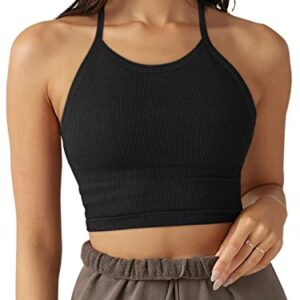 LASLULU Sports Bra for Women Crop Tops Racer Back Tank Tops Longline Workout Yoga Bra Halter Neck Cropped Casual Tops