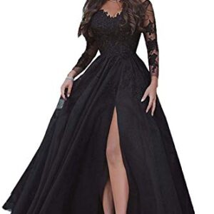 LastBridal Women Lace s Long Sleeves Prom Dress High Slit Evening Gowns Lb0076