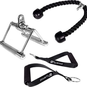 LAT Pulldown Attachments for Gym – Cable Machine Attachment Set with Tricep Pull Down Rope, Exercise Handles and V Row Double D Handle – Weight Lifting Workout Accessories