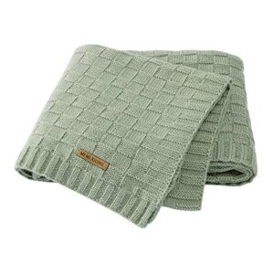 LAWKUL Cable Knit Baby Blanket Green Receiving Baby Blankets Crochet Safe Cellular Blanket Baby for Newborn Boy and Girl Size 40×30 Inches