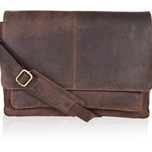 Leather Messenger Bag Locking Laptop Briefcase For Men Adjustable Satchel Handle