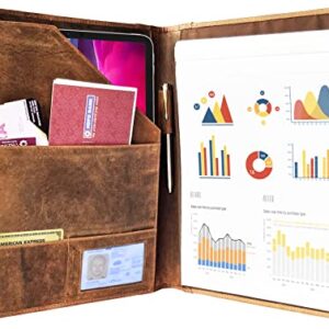 Leather Padfolio Resume Portfolio File Folder – Interview/Legal Document Organizer for Letter Size Writing Pad with Business Card Holder, Ideal Gift Portfolios for Men and Women (Large, Brown)