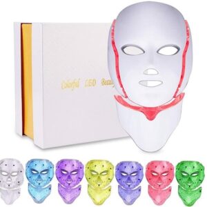 Led Face Mask Light Therapy – 7 Color Photon Blue & Red Light Maintenance Skin Rejuvenation Facial Skin Care Mask, Home Skin Care Mask for Face and Neck