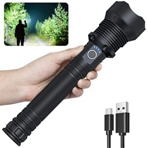 LED Flashlights Rechargeable High Lumens, 90000 Lumen Super Bright Flashlight with ΒATTERY Zoomable 3 Modes IPX5 Waterproof Handheld Powerful Flashlights for Camping Hunting Emergencies