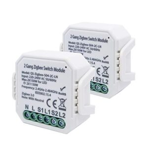 LEOMOCA Zigbee Smart Light Switch Module 110-240V- DIY Relay Switch Home Automation Modules-Smart Life/Tuya Compatible with Alexa Echo Google Home (2gang-2Pack Need Neutral)