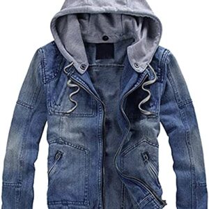 Lentta Denim Jacket Men Fall Fashion Zip Up Hoodie Jean Jacket Button Down Jeans Coat