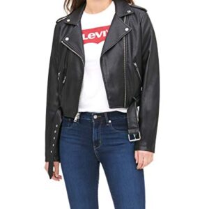 Levi Women Faux Leather Belted Motorcycle Jacket (Standard and Plus Sizes)