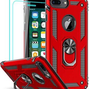 LeYi Compatible for iPhone 8 Plus Case, iPhone 7 Plus Case, iPhone 6 Plus Case with Tempered Glass Screen Protector [2Pack], Military-Grade Phone Case with Ring Kickstand for iPhone 6s Plus, Red
