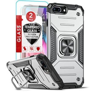 LeYi Compatible with iPhone 6s Plus Case, iPhone 6 Plus Case, iPhone 8 Plus Case with 2 Tempered Glass Screen Protector, [Military-Grade] Phone Case with Ring Kickstand for iPhone 7/8 Plus, Silver
