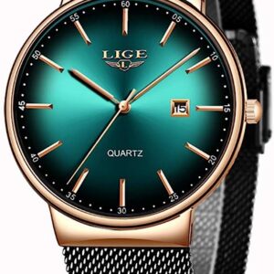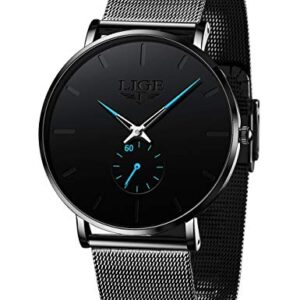 LIGE Mens Watches Ultra-Thin Analog Quartz Minimalist Stainless Steel Mesh Band Dress Watches for Men