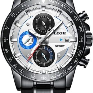 LIGE Mens Watches Fashion Luxury Elegant Sport Analog Quartz Watch for Gents Business Casual Waterproof Stainless Steel Male Dress Wristwatch Calendar Round Big Dial