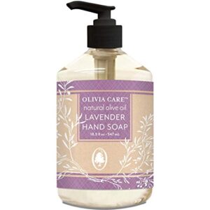 Liquid Hand Soap By Olivia Care All Natural – Cleansing, Germ-Fighting, Moisturizing Hand Wash for Kitchen & Bathroom – Gentle, Mild & Natural Scented – 18.5 OZ (Lavender)
