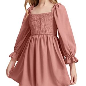 Little Girls Kids Summer Chiffon Ruffle Mini Dress Square Neck Lantern Sleeve Short Dress Tulle Smocked