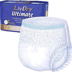 LivDry Ultimate XL Adult Incontinence Underwear, High Absorbency, Leak Cuff Protection, X-Large, 12-Pack