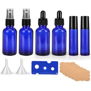 6 Pack Refillable Glass Bottles Kits, Blue Glass Spray Bottles with Fine Mist Sprayer & Dust Cap, Glass Roller Bottles,Glass Bottles with Glass Eye Droppers for for Essential Oils
