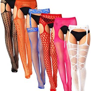 6 Pairs Women Fishnet Thigh High Stockings Suspender Pantyhose Stockings for Halloween