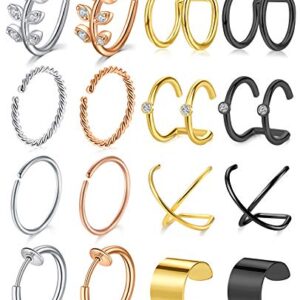 Longita Ear Cuff Earrings for Women Non Piercing Ear Hoop Earrings Stainless Steel Clip On Cartilage Earring Huggie Dainty Minimal Crossed Conch Piercing Sparkling Jewelry Silver Rose Gold