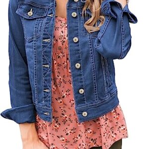 LookbookStore Women Basic Long Sleeves Button Down Fitted Denim Jean Jackets