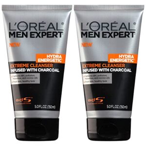LOreal Men Expert Hydra Energetic Facial Cleanser with Charcoal for Daily Face Washing, Mens Face Wash, Beard and Skincare for Men, 2 ct.