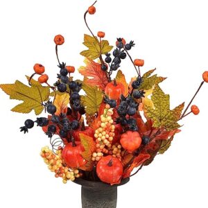 LSKYTOP 4 Packs Artificial Fall Flower Stems 13.5 Inch with Artificial Pumpkins, Color Berries,and Maple Fall Leaves for Home Kitchen Festival Thanksgiving Autumns Decor