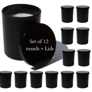 LuxyM – 7 Oz Black Matte Candle Jars with Black Matte Metal lids (12 Pcs) – Candle Jars for Candle Making – Small Glass Jars with lids – Candle Making Supplies