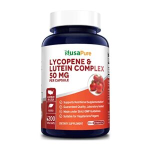 Lycopene & Lutein Complex 50mg 200 Veggie Capsules (Non-GMO & Gluten Free)