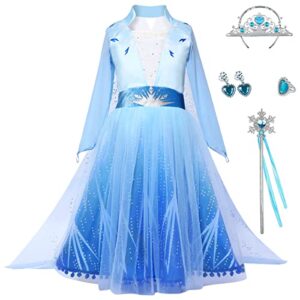 Luzlen Princess Costumes for Little Girls Halloween Party Cosplay Dress Up with Accessories Blue