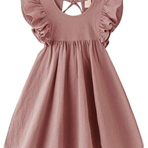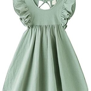 LYXIOF Toddler Baby Girl Cotton Linen Dress Ruffle Sleeve Halter Sleeveless Kids Casual Dresses