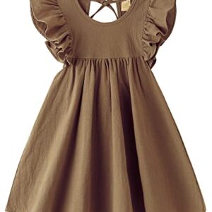 LYXIOF Toddler Baby Girl Cotton Linen Dress Ruffle Sleeve Halter Sleeveless Kids Casual Dresses