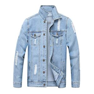 LZLER Jean Jacket for Men, Classic Ripped Slim Denim Jacket with Holes