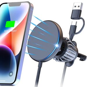Magnetic Wireless Car Charger Mount,Fast Charging Compatible with Magsafe Car Charger,𝙐𝙥𝙜𝙧𝙖𝙙𝙚𝙙 Air Vent Hook Made for Caseless iPhone 14/13/12 Phones and Magnetic Cases(No Charger Adapter)