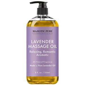 MAJESTIC PURE Lavender Massage Oil for Men and Women – Great for Calming, Soothing and to Relax – Blend of Natural Oils for Therapeutic Massaging and Aromatherapy – 8 fl oz.