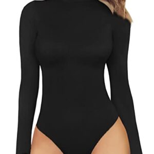 MANGOPOP Women Mock Turtle Neck Long Sleeve Tops Bodysuit Jumpsuit
