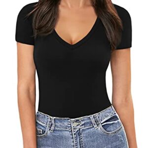 MANGOPOP Deep V Neck Short Sleeve Long Sleeve Tops Sexy Bodysuit for Women Clothing