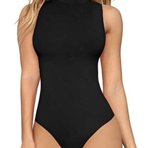 MANGOPOP Women Mock Turtle Neck Sleeveless Tank Tops / Short Sleeve Bodysuit Leotard Clothing