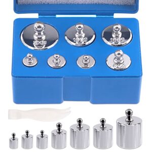 Mardatt 8 Pcs Precision Scale Calibration Weight Set, 10g 2x20g 50g 2x100g 200g Grams Steel Weights Calibration with Tweezers for Digital Balance Scale, Jewellery Scale, M2 Class(Totally 500g)