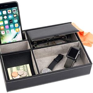 Mantello Leather Desktop Storage Organizer, Multi Catchall Tray, Valet Tray, Nightstand or Dresser Organizer – 5 Compartment Wallet, Phone, Keys, Jewelry, Money, Accessories – Anti-Scratch Felt Bottom