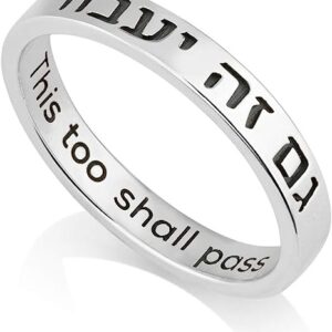 Marina Jewellery 925 Sterling Silver Engraved Ring Women, Men Band, Hypoallergenic, Anxiety Ring – This Too Shall Pass – in Hebrew, English. (see size options)