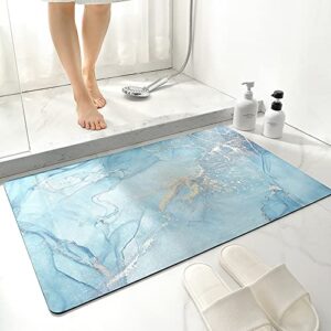 Marble Bath Rug Mat, Quick Dry Floor mat, Soft Carpet Anti-Slip Bathroom Rug Floor Rug, Washable Crystal Shape Mat – Blue,19.7″x31.5″