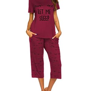 MAXMODA Women Pajama Short Sleeves Cute Capris Pajamas Pajama Set Wine Red XL