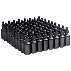 7 Colors Available – The Bottle Depot Bulk 72 Pack 1 oz Black Glass Bottles With Dropper; Wholesale Quantity for Essential Oils, Serums with Pretty Frosted Finish to Protect and Preserve Quality
