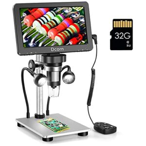 7 Digital Microscope 1200X,Dcorn 12MP 1080P Photo/Video Microscope with 32GB TF Card for Adults Soldering Coins,Metal Stand,Wired Remote,10 LED Fill Lights,PC View,Windows/Mac Compatible