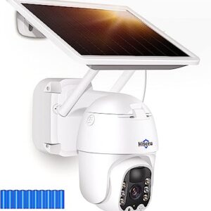 【Solar Security Camera】 Hiseeu 2K Pan/Tilt/Zoom Security Camera Wireless Outdoor, Battery Powered, Wire-Free, Floodlights Color Night Vision,Two Audio.IP66 Waterproof,PIR Human Detection, 2.4Ghz WiFi