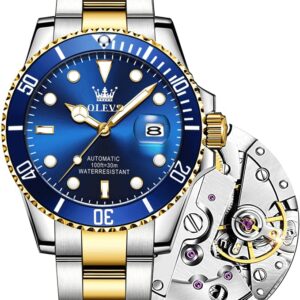 【Upgraded】Men Automatic Watches,Classic Business Big Face Self Winding Mechanical Watch with Date,Luxury Unidirectional Rotating Bezel Waterproof Large Luminous Pointer Watch for Men,Gold Silver Band