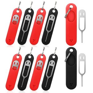8 Pieces SIM Card Removal Tool SIM Card Ejection Tool SIM Card Tray Extractor Eject Pin Removal Tool Needles Opener with Removable Key Chain Charm for Most Smartphones and Tablets, Black, Red