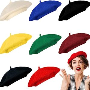 8 Pieces Wool Berets Artistic French Hat Solid Color French Beret Winter Beanie Cap Beret Hat for Women Men Girls Lady