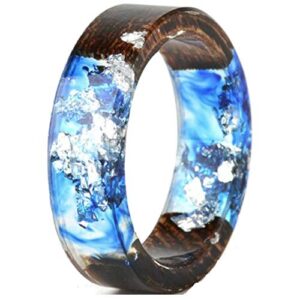 8mm Transparent Acrylic Resin Wood Ocean Style Wedding Band Anniversary Ring