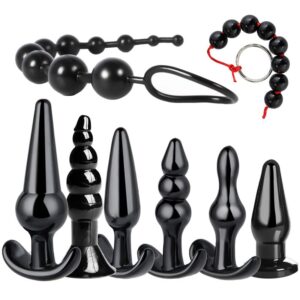 8PCS Black Amal Plug Butt Toy Plug Tool for Men Women Trainer Kit Expanding Plug Toys Anel Plug Amal Beads Butt Tool Beads Plug Toy for Men Women Waterproof Easy to Clean Travel Sunglasses Party