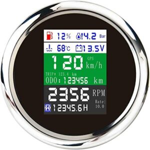 85MM Digital GPS Speedometer Gauge Waterproof Boat Speedometer Multi-Function Gauge for Car Motorcycle Marine MPH Speedometer 6 in 1 Speedometer Tachometer Fuel Level Water Temp Sensor Alarm 9-32V